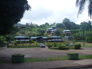 The town is two streets made up of five food markets, two surprisingly well-stocked hardware stores, two restaurants, one bank, one post office, one coiffure next to the one pharmacy, the Gendarmerie, a police station complex and one Paul Gauguin museum. Almost everyone I meet is Polynesian, and any sense of the island’s being similar to Hawaii is broken by the loud conversation entirely in French. Greetings are yelled from passing cars or across the street as walkers pass. Everyone knows everyone else and every knowing must be acknowledged. Women kiss–cheek to cheek–and men shake hands in a way westerners would consider effeminate. Hair among women is long and worn out or in a pony tail. Most men sport lavish tattoos. The most frequent themes of conversation result in smiles and laughter that are infectious though I have no idea what is being said.