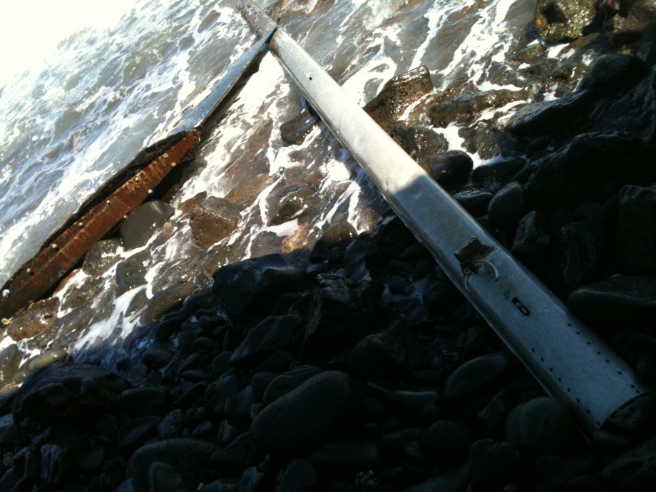 » By way of warning, an old mast and lead keel on the rocks just past the harbor entrance