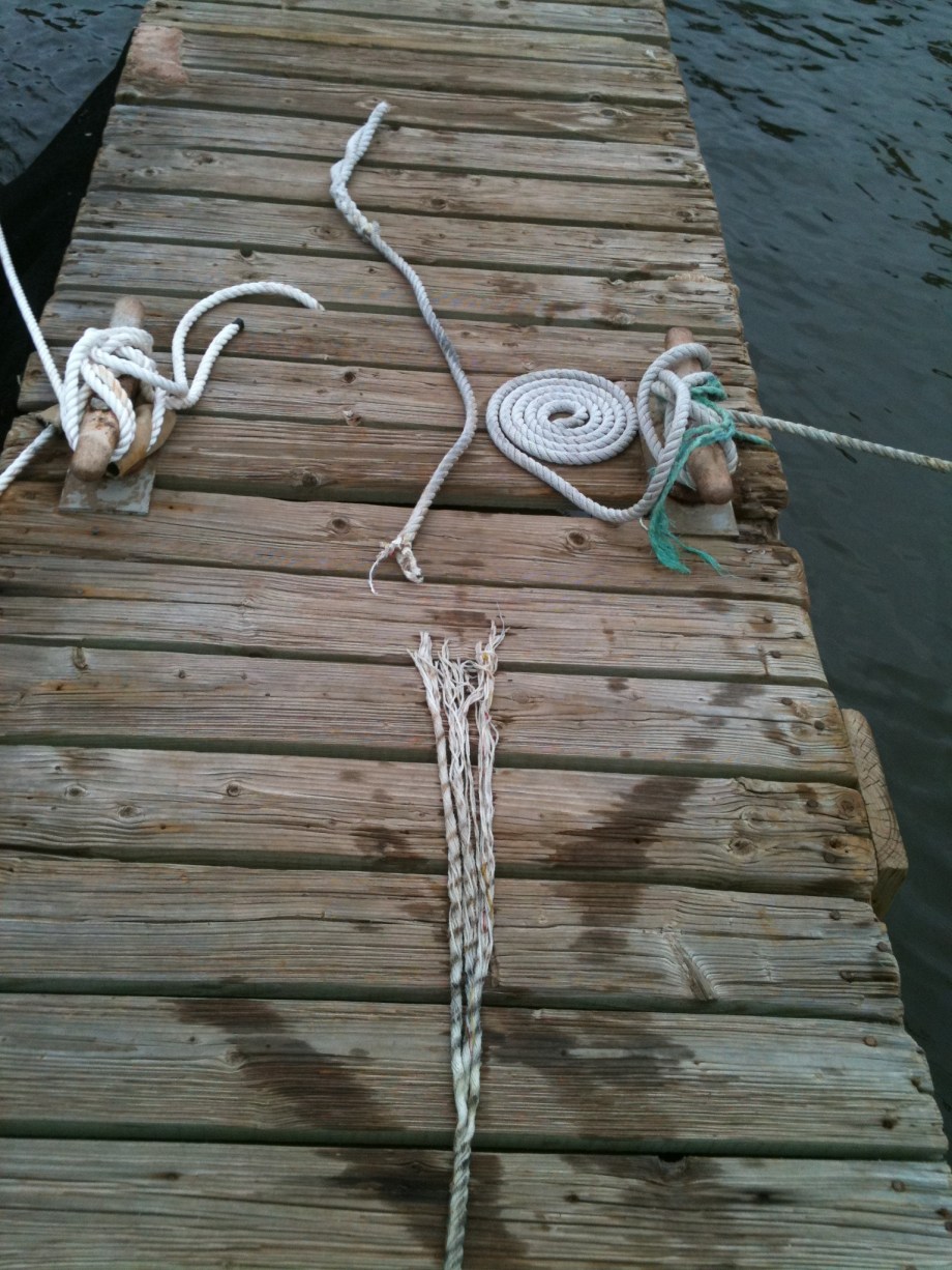 » The combination of southswell surge and old, rusty dock cleats: a snapped spring line