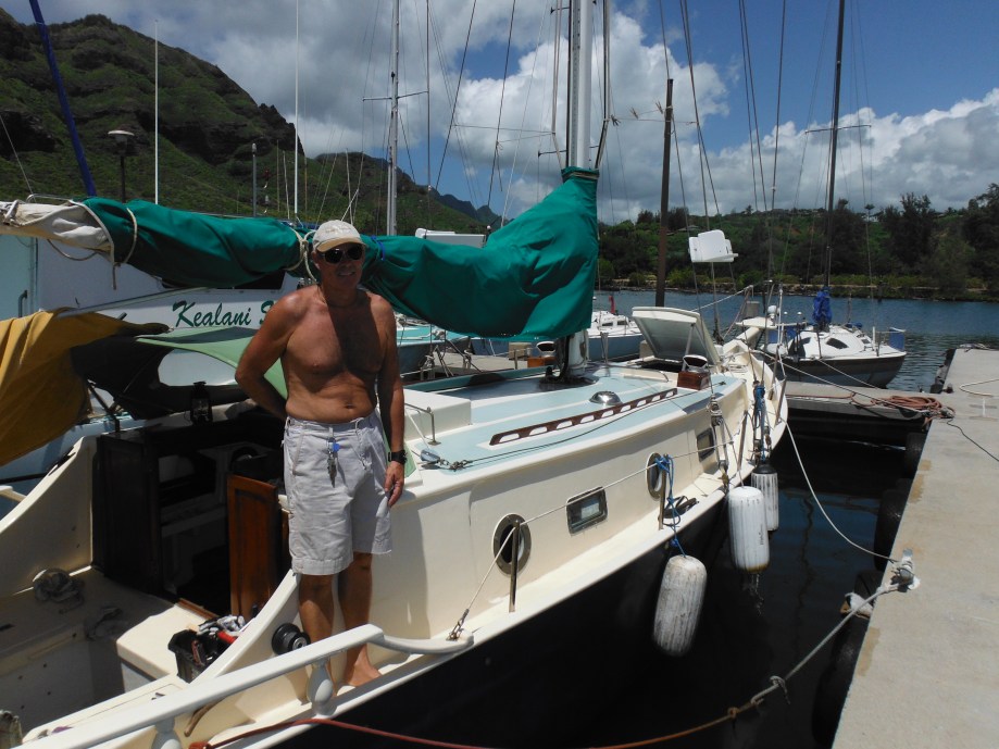 I made several friends the month in Nawiliwil, amongst them two notable singlehanders. Right next to Murre was Deja Vu, built by Jonathan Reid in South Africa many years ago and sailed extensively by him in the South Pacific before his “capture” in Kauai. He’s recently published his memoirs in DAYS OF DEJA VU available on Amazon.