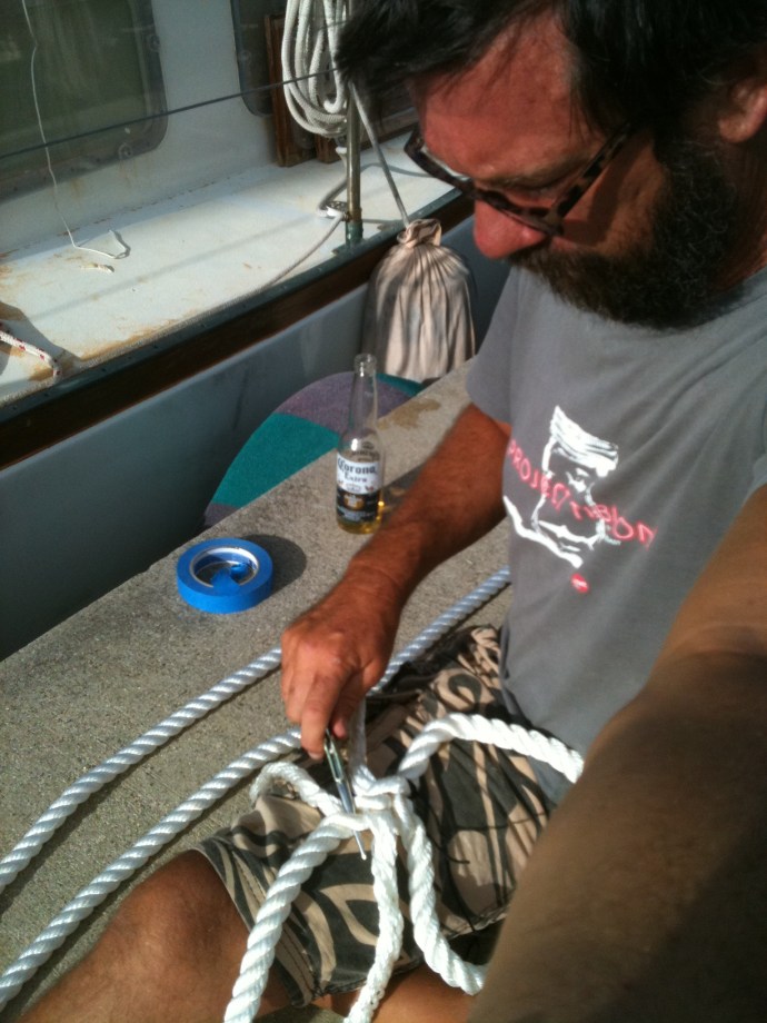 Splicing new line to replace what had chaffed through on Lanai.