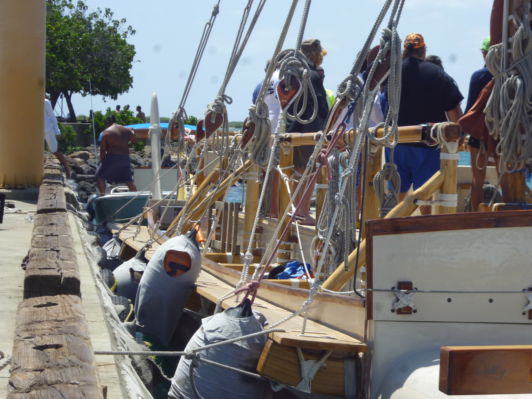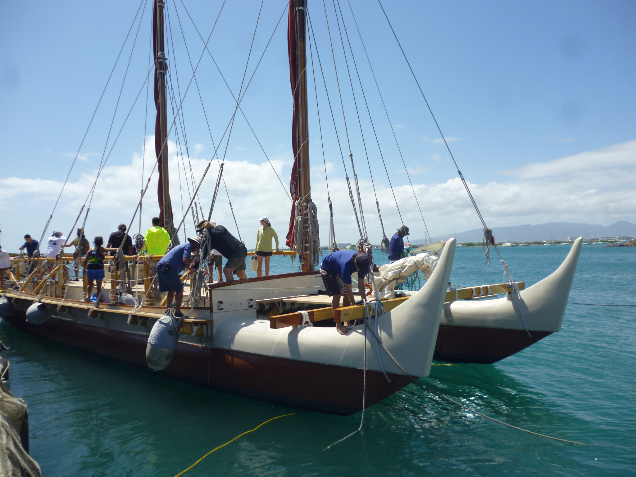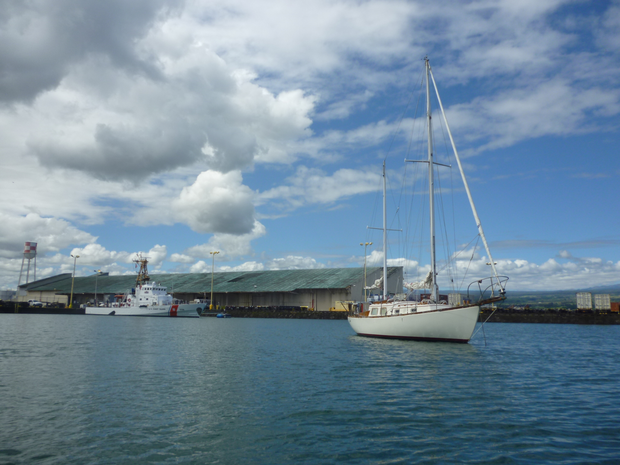 The disappointment of finding myself alone in a familiar harbor quickly evaporated. Peter and Nansy arrived before I’d switched off the engine, Nansy carrying a Ti leaf lei and Peter a broad smile and a handshake. That they had not met me earlier was my fault, I now recalled. Predicting the transit time of a small, wind-driven ship is futile, so I’d promised to alert them by phone as we made landfall. But Murre’s jockeying with a cruise ship at the harbor entrance distracted me, and I had failed to keep my part of the bargain.