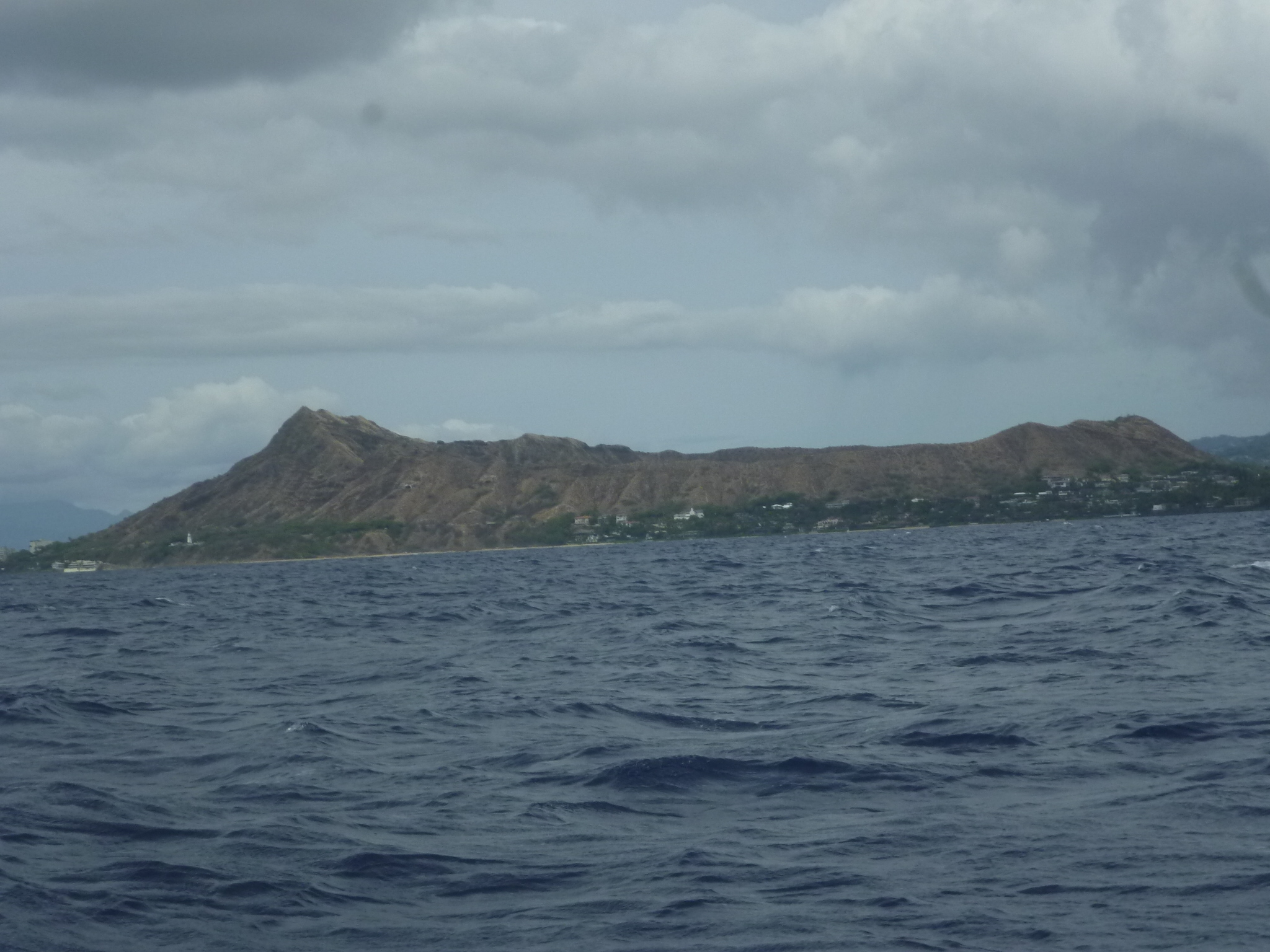 We speed directly away from the pier and out into the open ocean where calm harbor waters are replaced with a small swell. The wind moves into the north. Our boat is taking spray over the bow.
