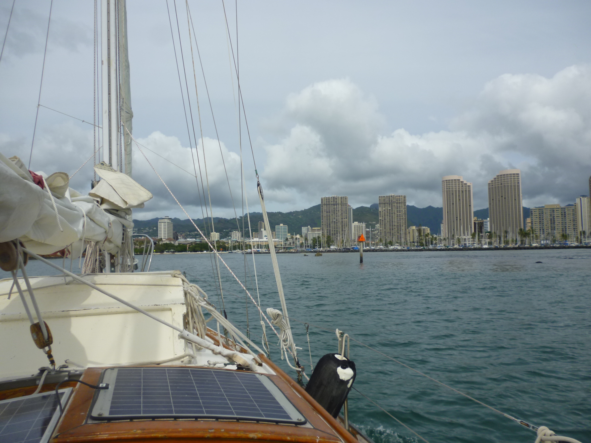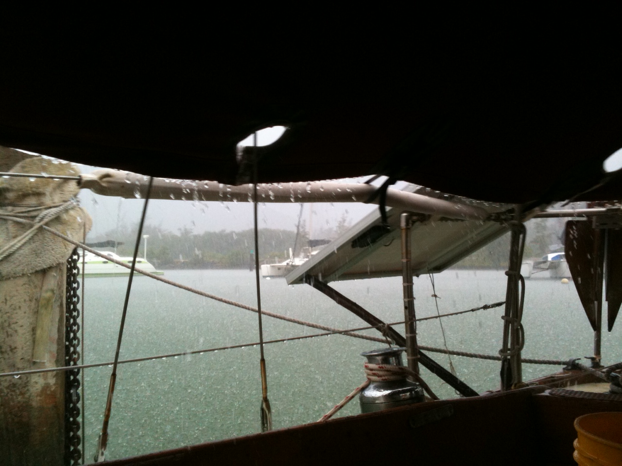 I’ve moved back aboard the boat. A few projects need doing before Murre and I launch another run through the islands. But our Kona continues. Two nights ago lightning lit up Nawiliwili and knocked out the harbor lights. I gingerly trod the cabin in flip-flops, expecting any moment to hear the splitting of Murre’s mast. And the next day it rained like Noah’s curse. And now and still.