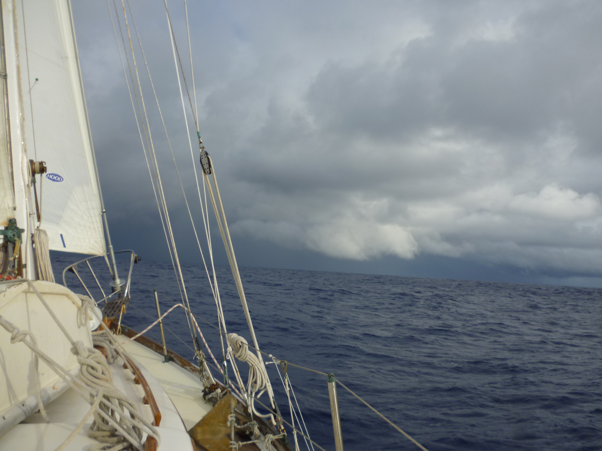We had fixed some leaks, but the weather finds others. On this crossing, water came in the port Dorade vent. We were on port tack and heeled heavily. The vent only drains to port, so filled with spray and overflowed into the cabin.