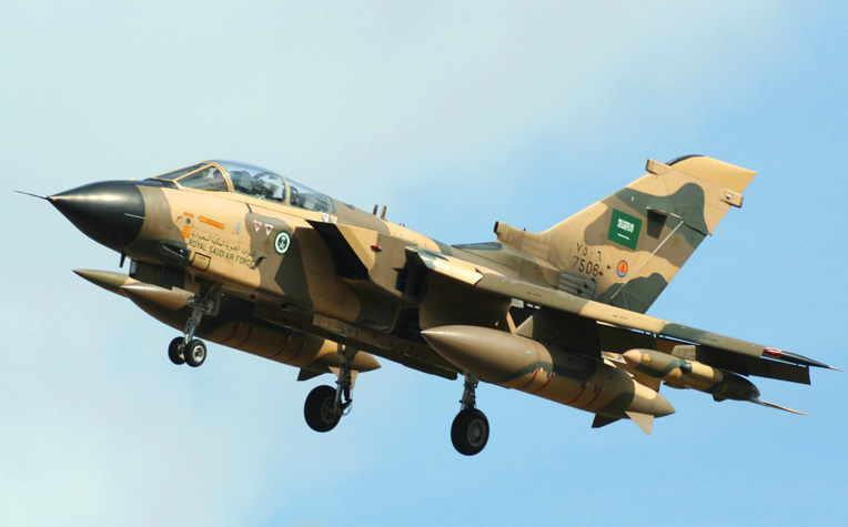 Saudi fighter jets roared low overhead any day except Friday, banking left and flashing the green ensign–a single simitar below the famous remark in Arabic script, “There is no god but God, and Mohamed is his messenger”. “The air base just beyond that fence is in high gear now,” said a neighbor pointing to a long runway obscured only by haze. “They’ve been at it constantly for weeks, but they bank left, always left. I hope that turns out to be the correct maneuver when the time comes.”