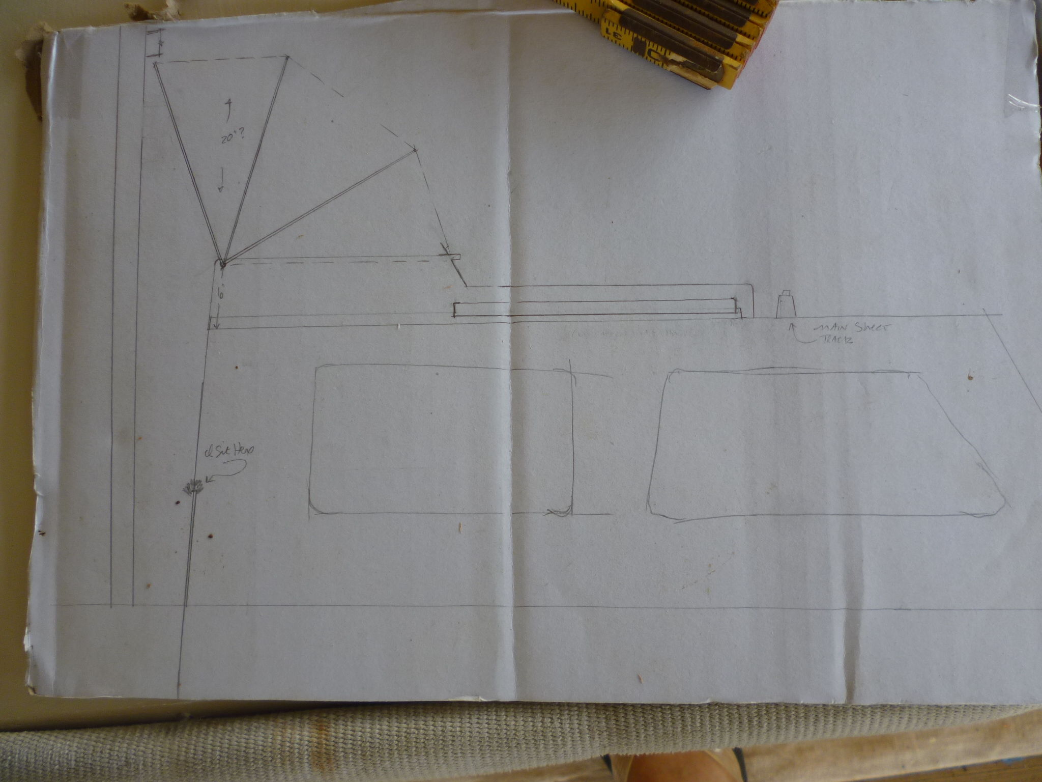 The basic idea was to build a small cover over the companionway hatch with a hood that would allow me to sit under it, dry in all weathers.
