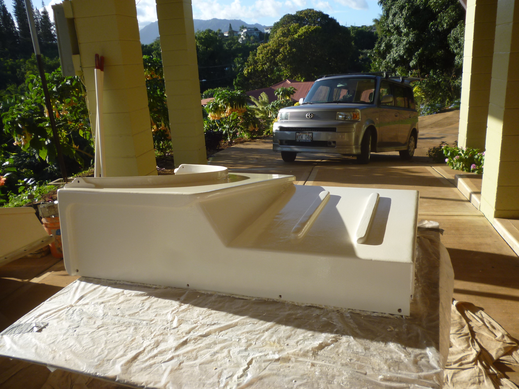 My wife arrives this evening by plane from New York via San Francisco and Los Angeles, and though she will not be staying with us, I’m deep-cleaning Murre as if she were. Mold has grown on the ceiling during the rainy months in Kauai. And dust continues to exploit its evolutionary niche no matter how predatory is the ships’s broom. Murre may or may not be cleaner after my work, but her heavy odor of Pin-Sol gives evidence to effort.