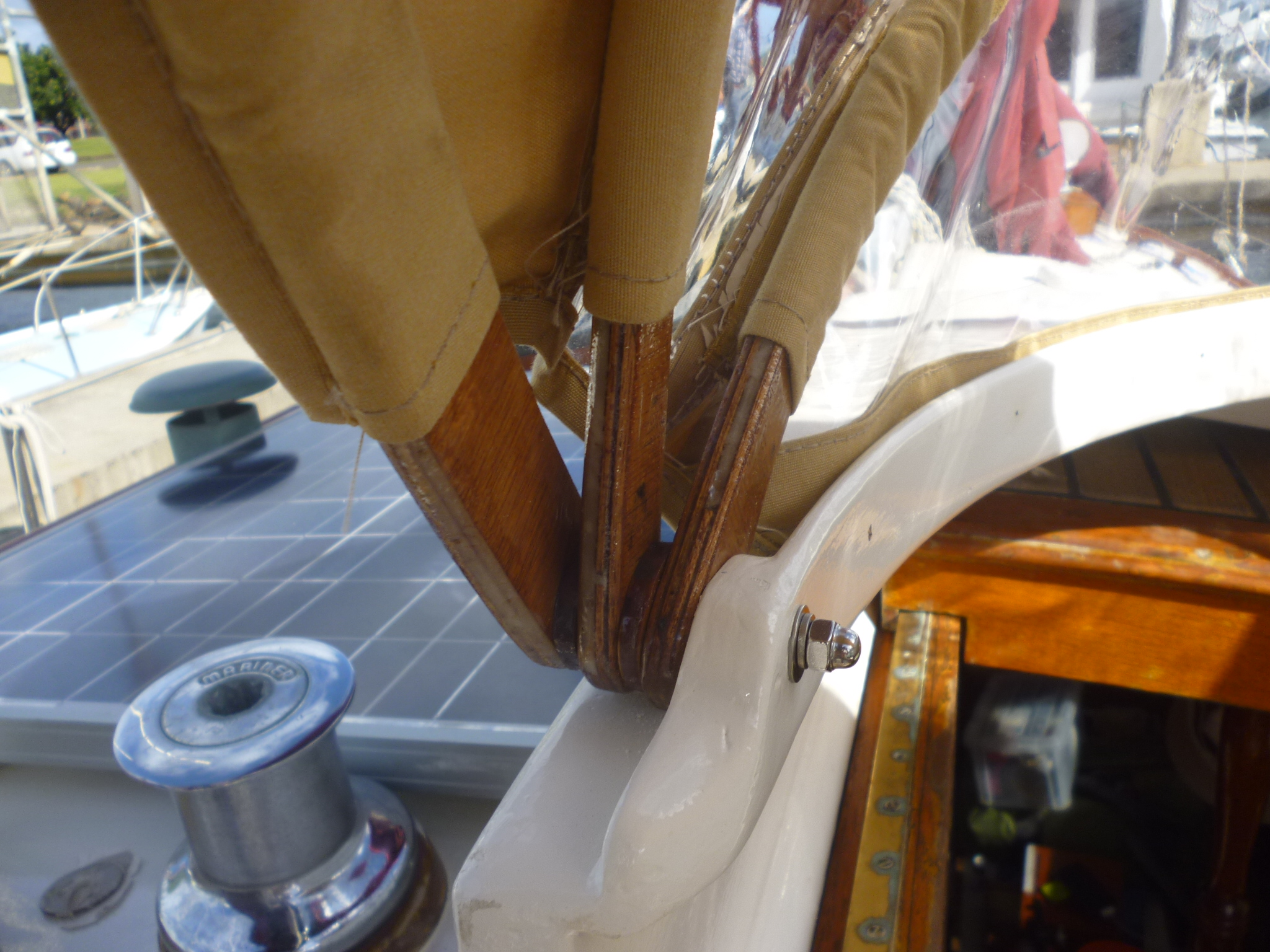 Once knocked up and hoops built, a second fitting to the boat, the purpose of which was to get right the height. I sat under it to make sure before cutting the top and hoops to final length.