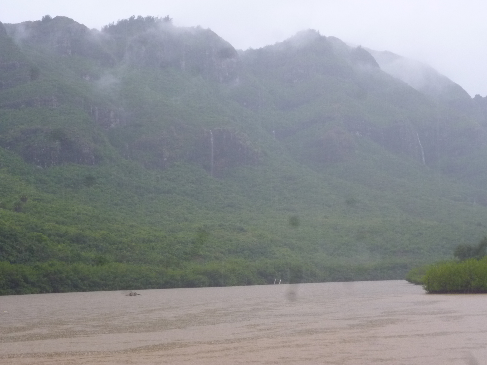 Lightning, thunder and rain continued all day and into the evening. Any waterfall that could fall fell. Rivers ran the color of carob and carried great rafts of dead wood from the hills. A real Kona Storm.