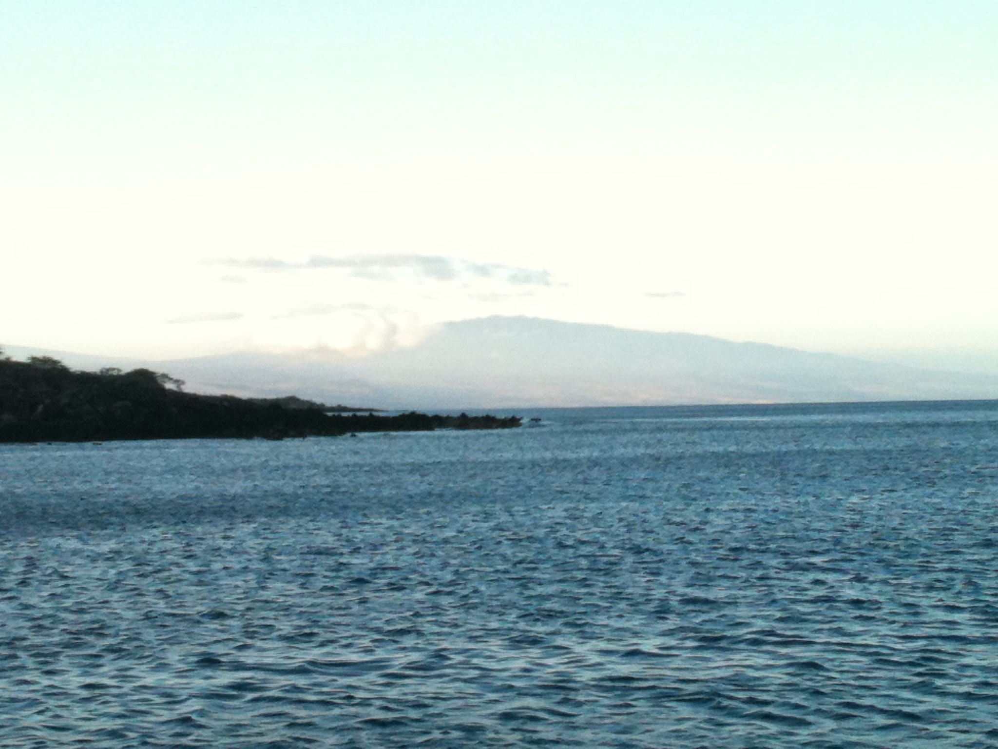 1030. Anchor down at Makena in sand at 17 feet. Calm. I swim in the coral garden for an hour then fall asleep on the bow, waking to an uneasy motion. A chop is building suggesting wind from the northwest, and Murre is exposed. By noon the wind has picked up to 10 knots, but I can see much more headed our way. I weigh and we move around Pu’u Ola’i Hill to Olenoa (“Big Beach”) just as white caps pour into Makena. Wind tears through the rigging all afternoon, but Pu’u Ola’i knocks down the chop and Murre rides easy.
