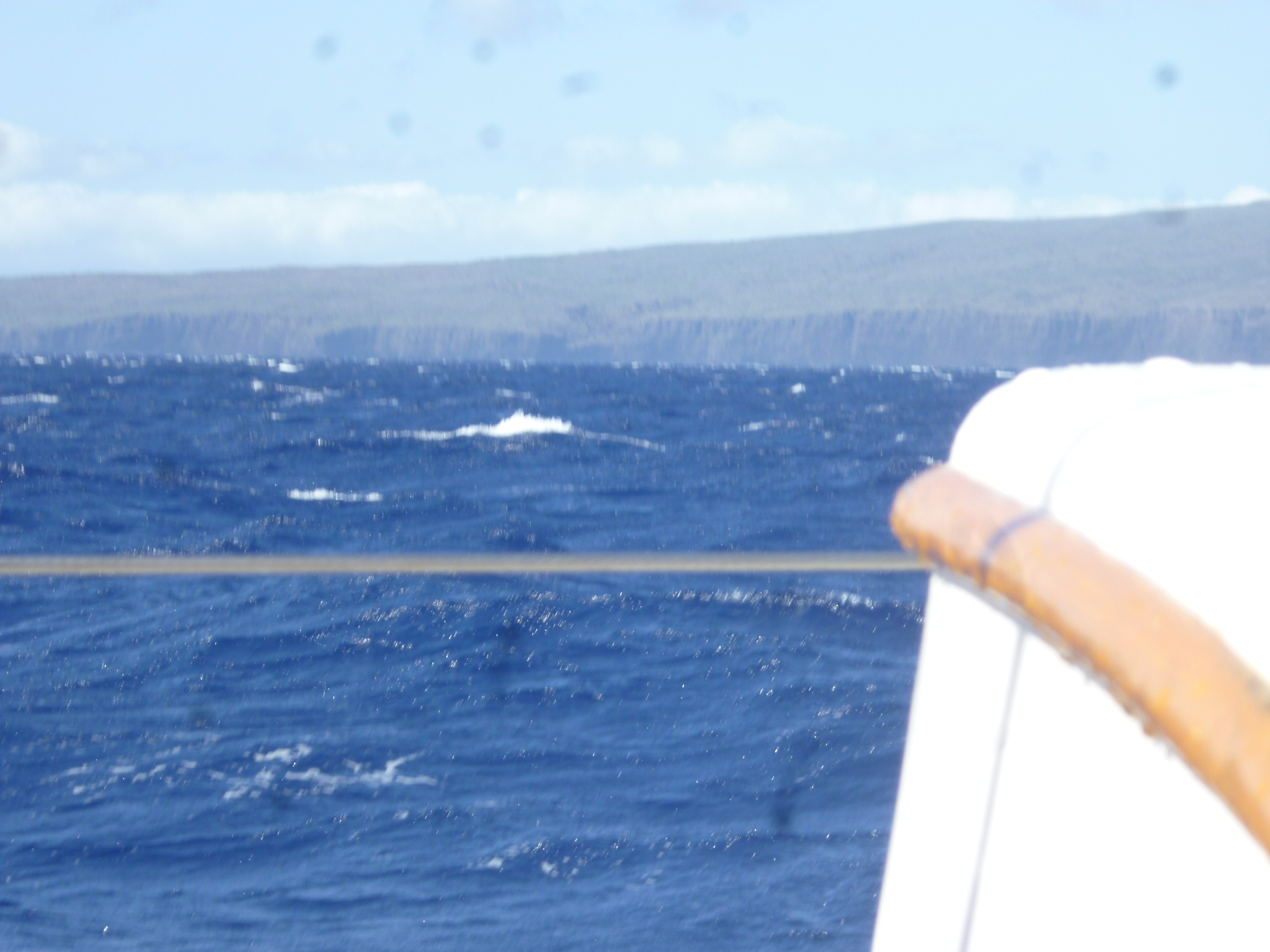 At 0640 the sun tops Haleakala and within moments there is wind on the nose at 15 knots. I try wearing a diving mask to keep the continuous waves of spray from my eyes, but the sun strikes the water on the mask surface full-on and is blinding, reducing visibility to nothing.
